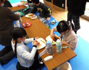 桜の季節になりました。 放デイでは体験活動としてハヤシライス作りをしました 自分たちでお米を炊いて、美味しいハヤシ作りを作って食べました。 買い出しもスタッフと子どもたちで行いました♪ おいしいですか~? は~い うまい!